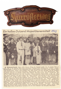 Zum 1.Mal nach dem Beschluss der Versammlung schossen 2 Frauen, nämlich Gertrud Mertens und Erika Nelles auf den Königsvogel. Durch Veranstaltungen der Schießmannschaft und der Schützenjugend konnten 3 neue Luftgewehre und eine Luftpistole angeschafft werden.