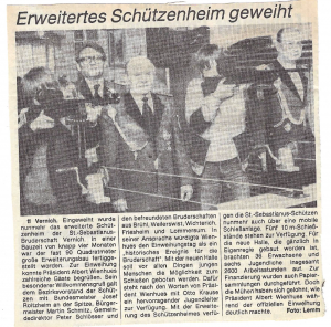 Erweiterung der Schießanlage um weitere 2 Schießbahnen. Die erweiterte Anlage erlaubte der Bruderschaft an sportlichen Wettschießen mit befreundeten Bruderschaften teilzunehmen.